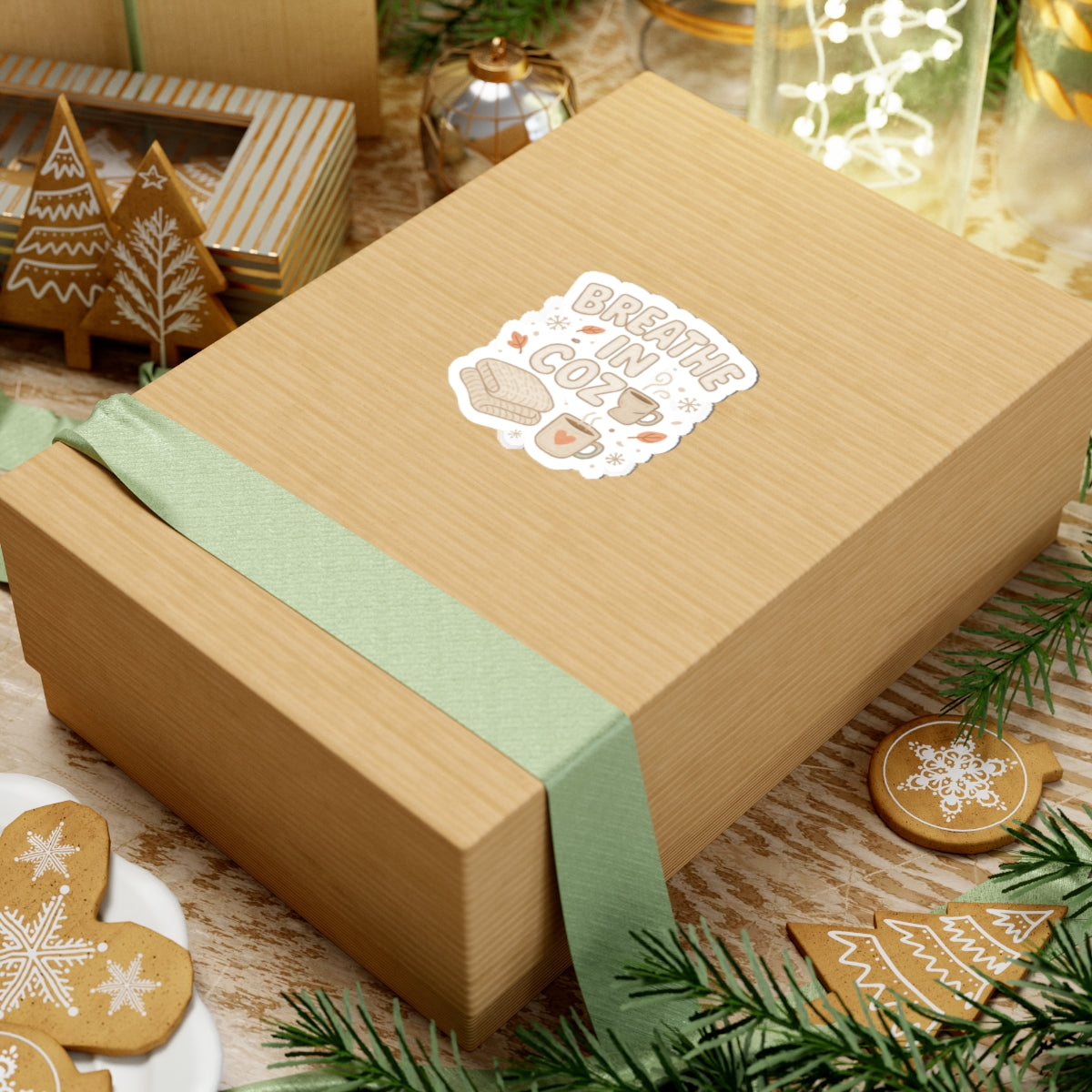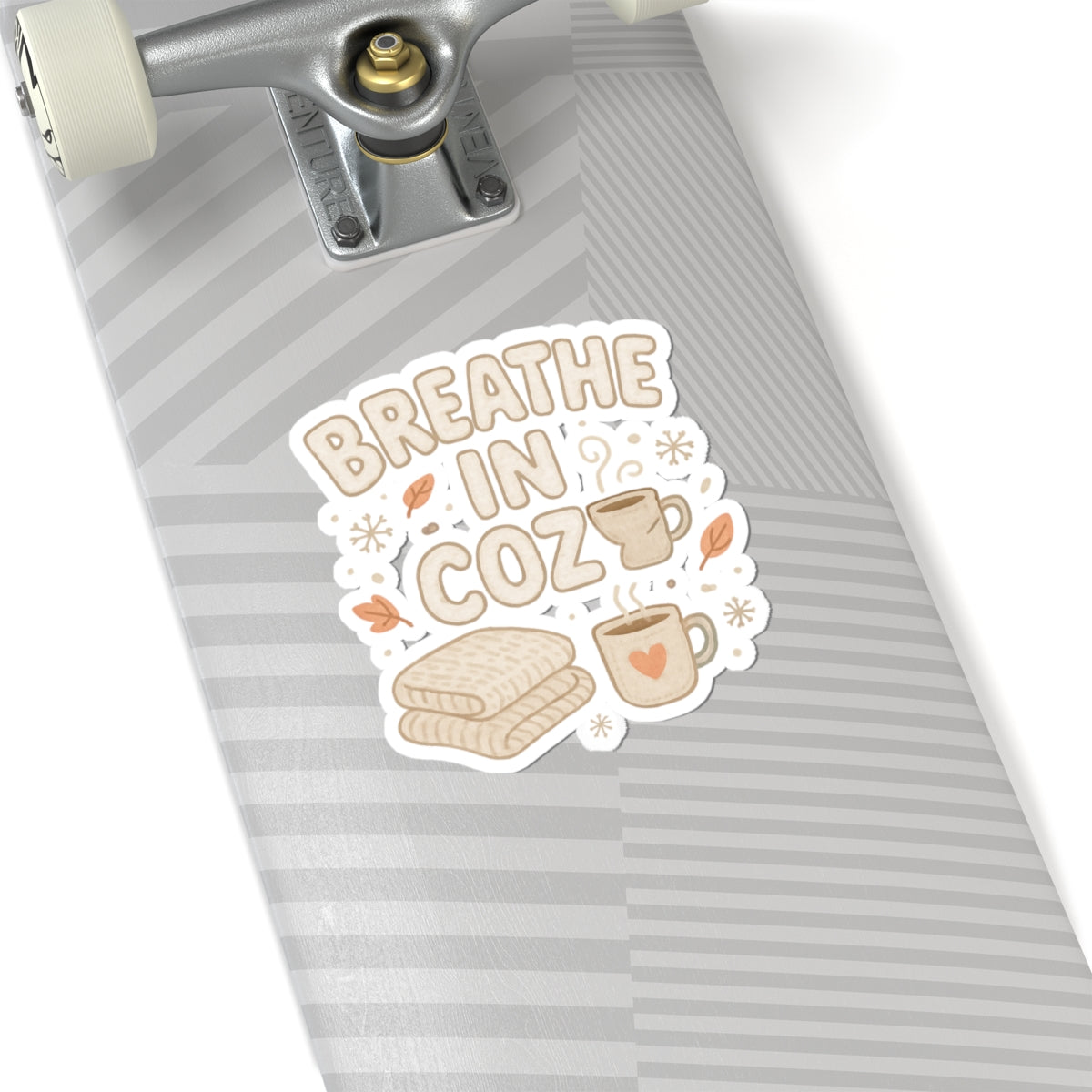 Breathe In Cozy Sticker — Autumn Cozy Aesthetic Laptop & Water Bottle Kiss-Cut Sticker